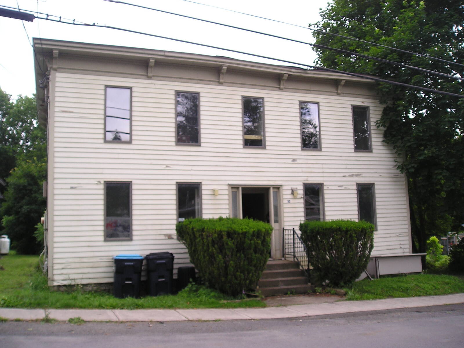 A quaint village 2 family with off street parking and a lovely back yard. Originally a single family in the late 1800’s, converted into a Tech Office for the past 40 years and now recently renovated into two units, 2 bedrooms upstairs and 1 bedroom downstairs. The essential floorplan is the same both upstairs and down: Two very large rooms with lots of natural light in the front on either side of the central staircase with a kitchen/dining/bath behind along the width of the back of the building. Building needs some routine maintenance.