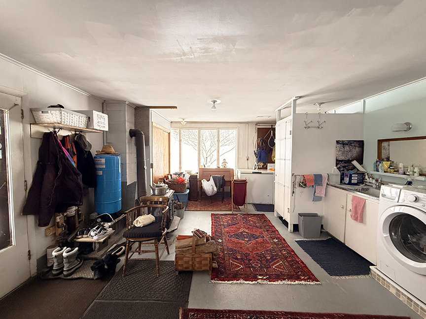 dedicated fiber arts studio – includes laundry, utility sink, quarter bath, mechanicals, wood stove, and