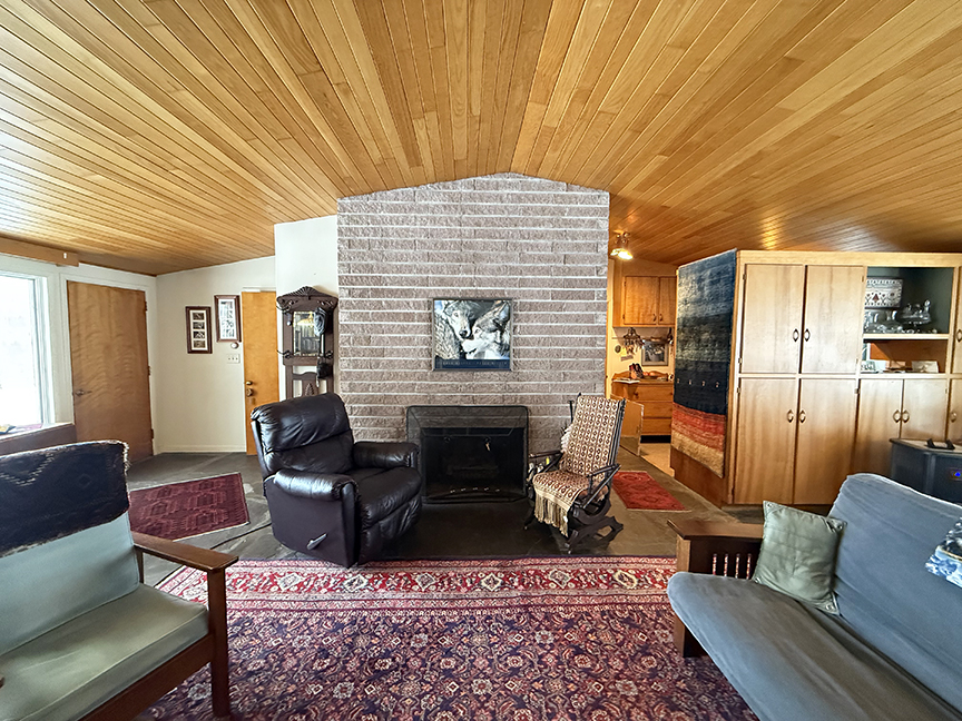 of the hills and the expansive yard. The vaulted Pacific Northwest red oak ceiling gives the room an