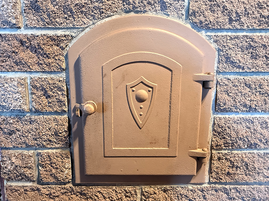 airy, lofted feel, grounded by a brick fireplace with bread oven, custom oak built-ins, and a stone floor